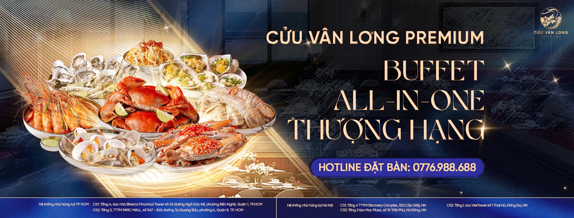 Thưởng thức buffet All-in-one 200+ món từ Hải Sản cho đến Dimsum, Sashimi, Nướng quốc tế,... trong không gian phong cách Indochine hiện đại, tinh tế sẽ mang đến trải nghiệm tuyệt vời.