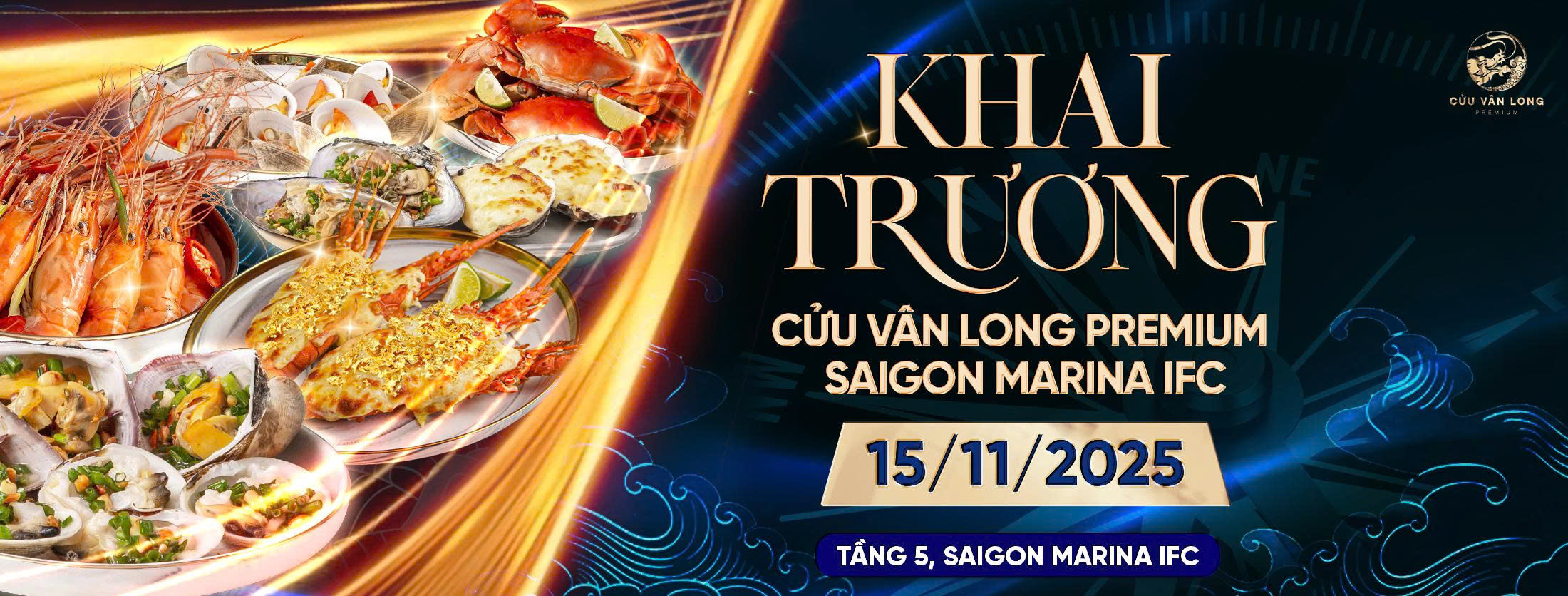 Không gian nhà hàng Cửu Vân Long Premium mang phong cách Indochine tinh tế, hiện đại, mang lại cảm giác vừa ấm cúng vừa sang trọng.